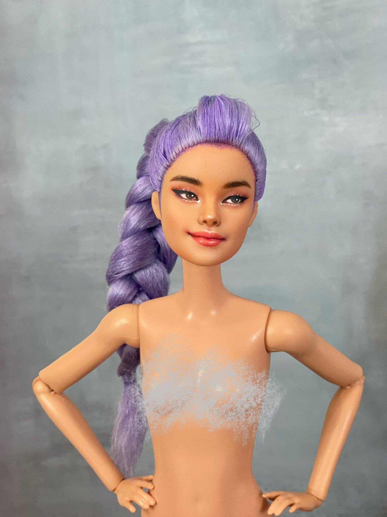 This 12" (30cm) female doll features a meticulously handcrafted, one-of-a-kind face repaint that highlights exquisite detail and artistry. The color penciled painting enhances her natural beauty, creating a unique expression that sets her apart from mass-produced dolls. Perfect for collectors and enthusiasts seeking a distinctive piece with refined, expert craftsmanship.