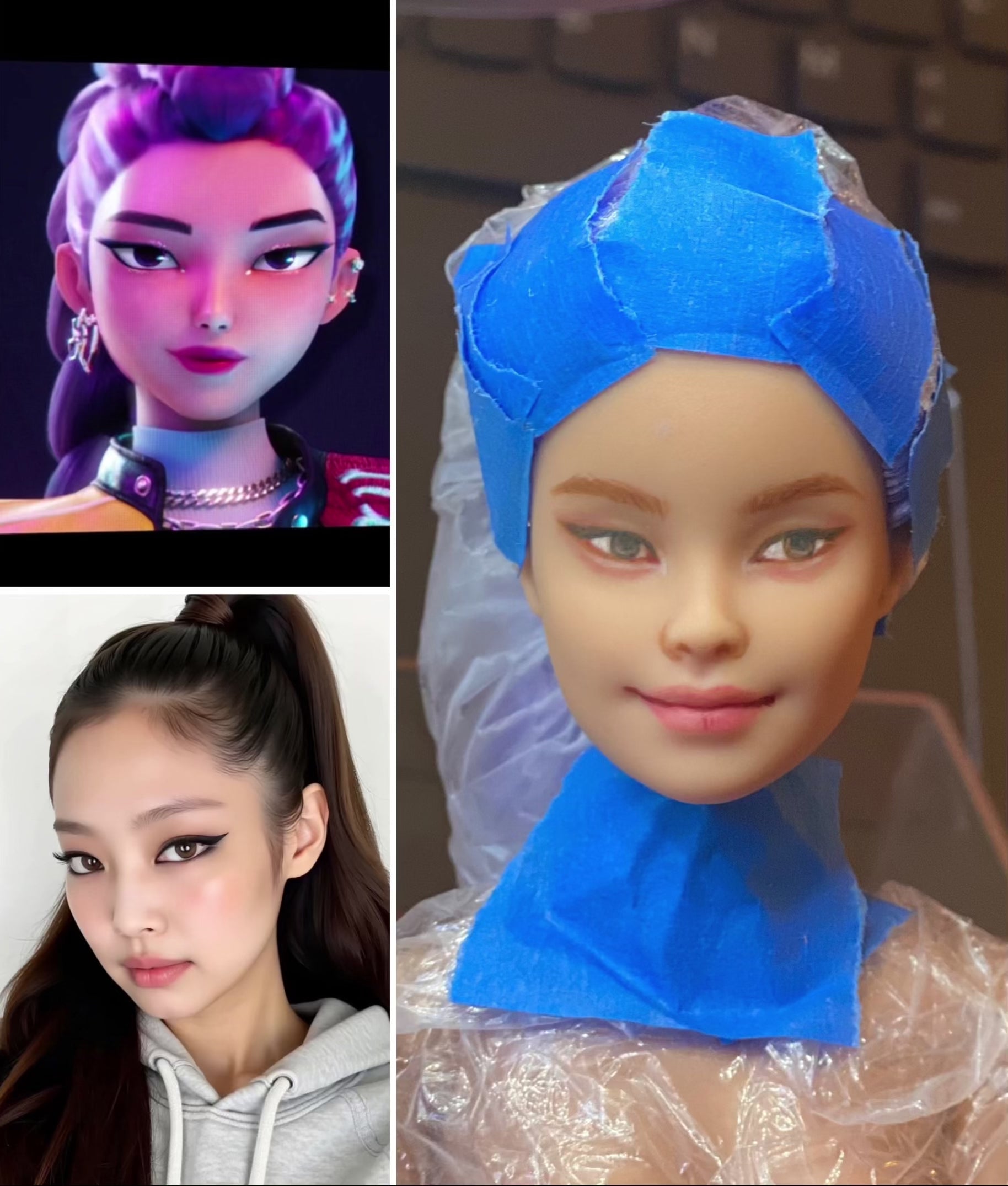 This repainting is inspired by 'Jennie' face from Black Pink the K-pop girl group + Rumi face from the movie Kpop Demon Hunters.
